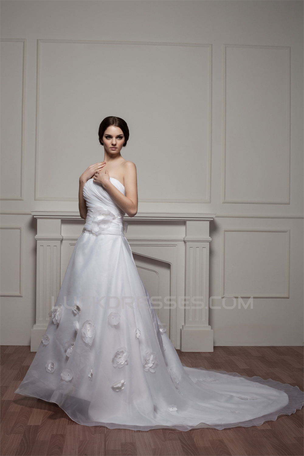 -50% attractive Strapless Sleeveless Satin A-Line Wedding Dresses 2030599