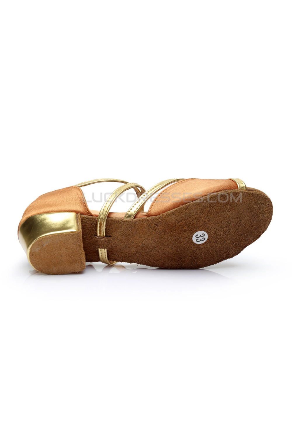 Women's Kids' Brown Satin Sandals Flats Latin Dance Shoes Chunky Heels Dance Shoes D601002