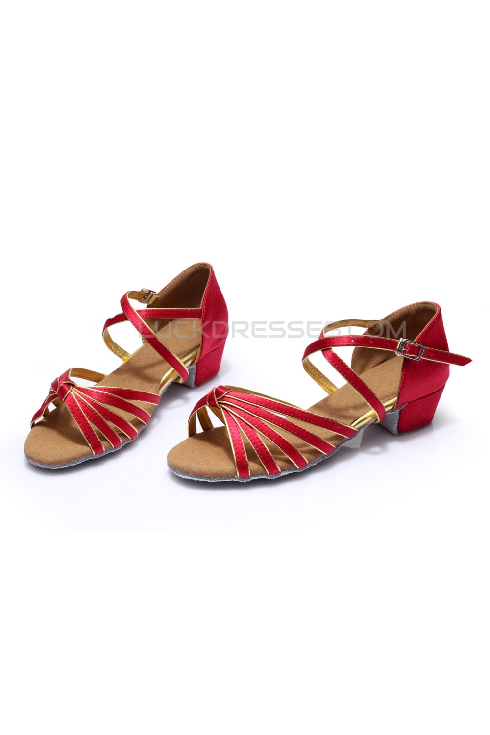 Women's Kids' Dance Shoes Latin/Ballroom Satin Chunky Heel Black Red Dance Shoes D601019