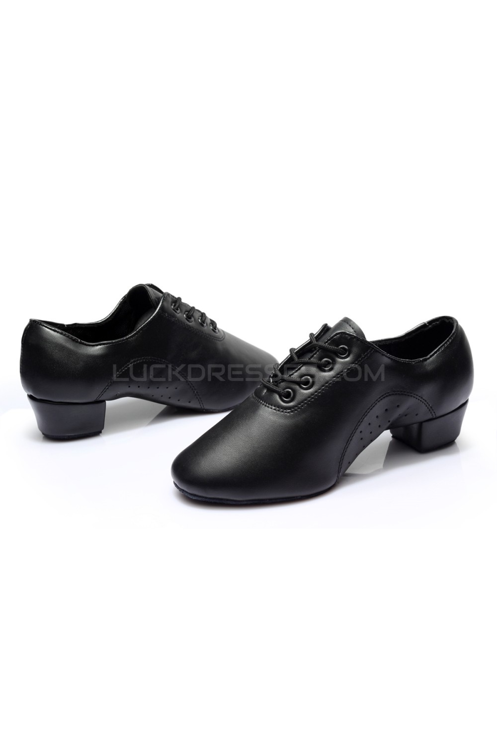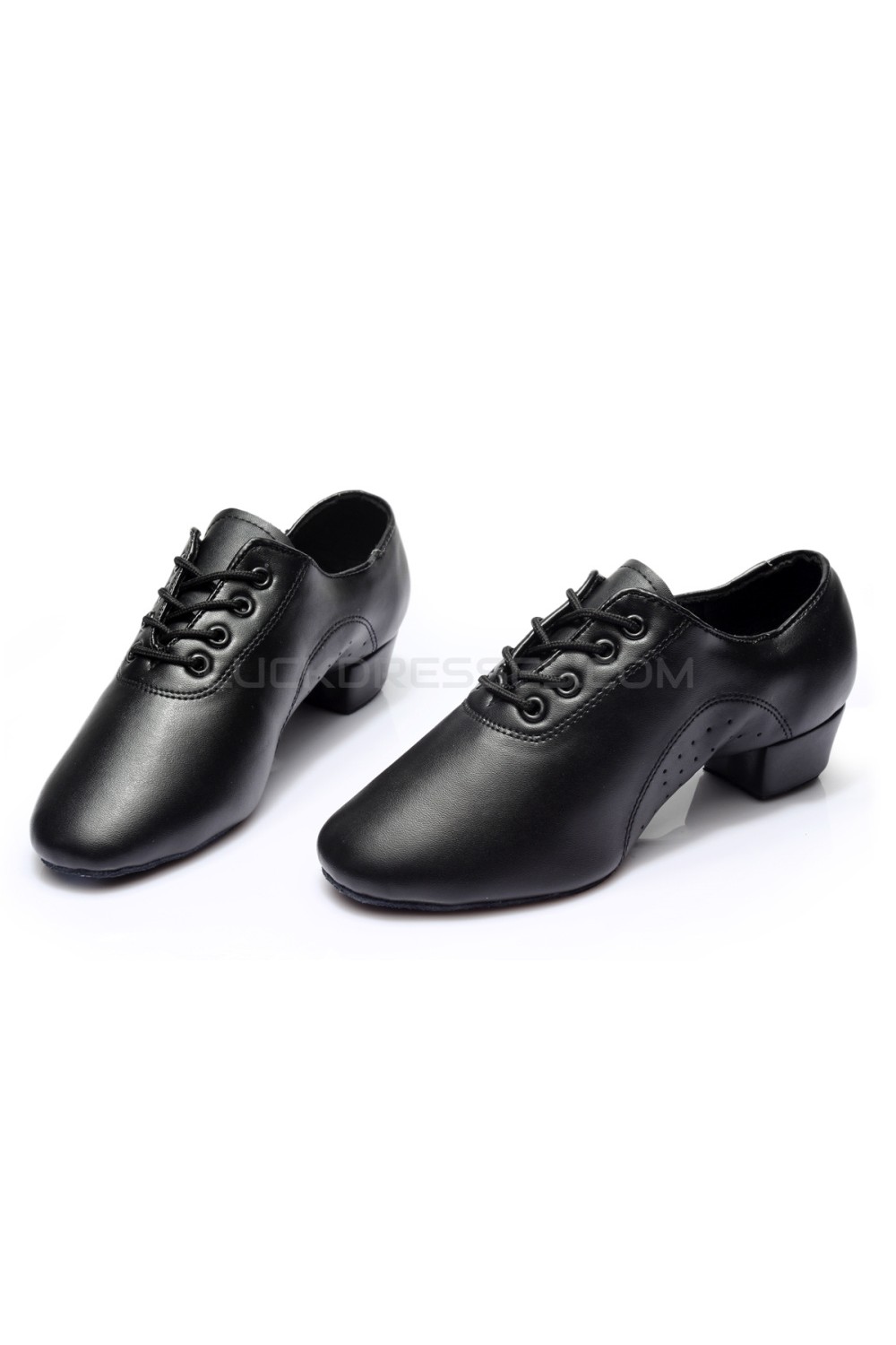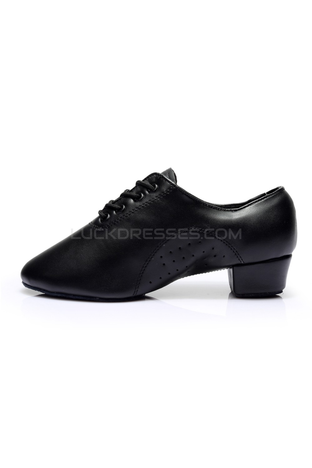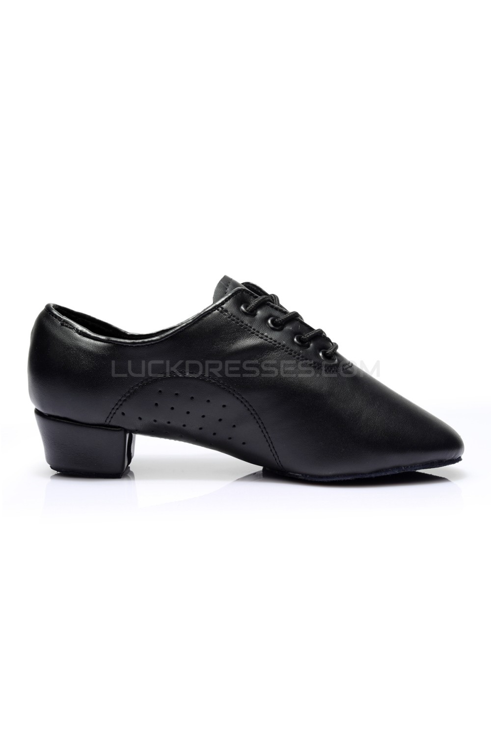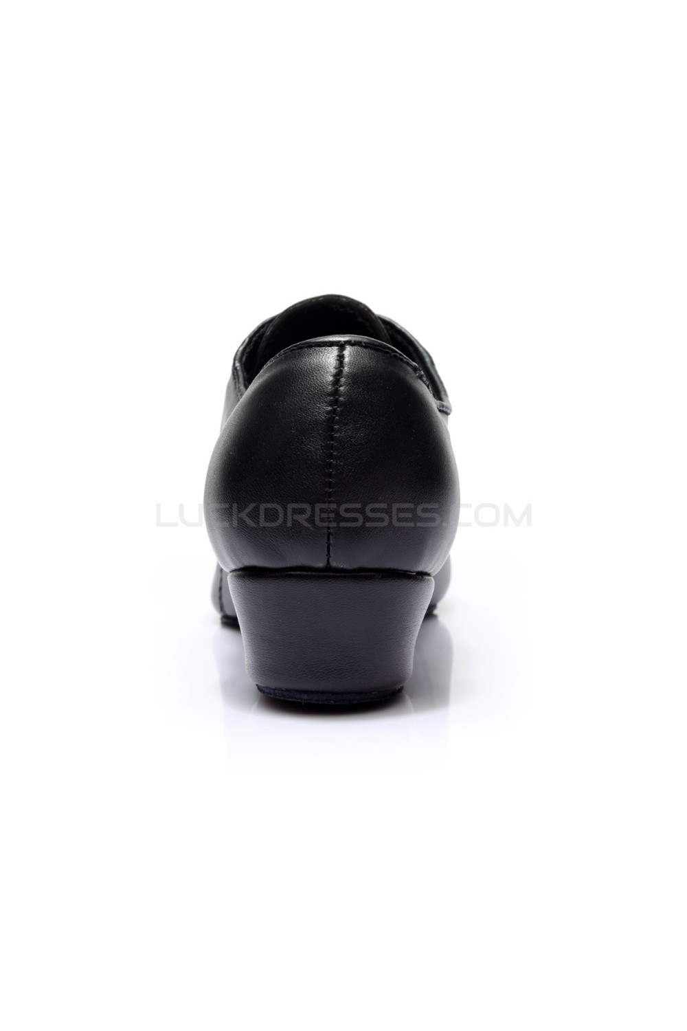 Men's Kids' Black Soft Leather Modern Ballroom Latin Dance Shoes Dance Sneakers Flat Heel D603007