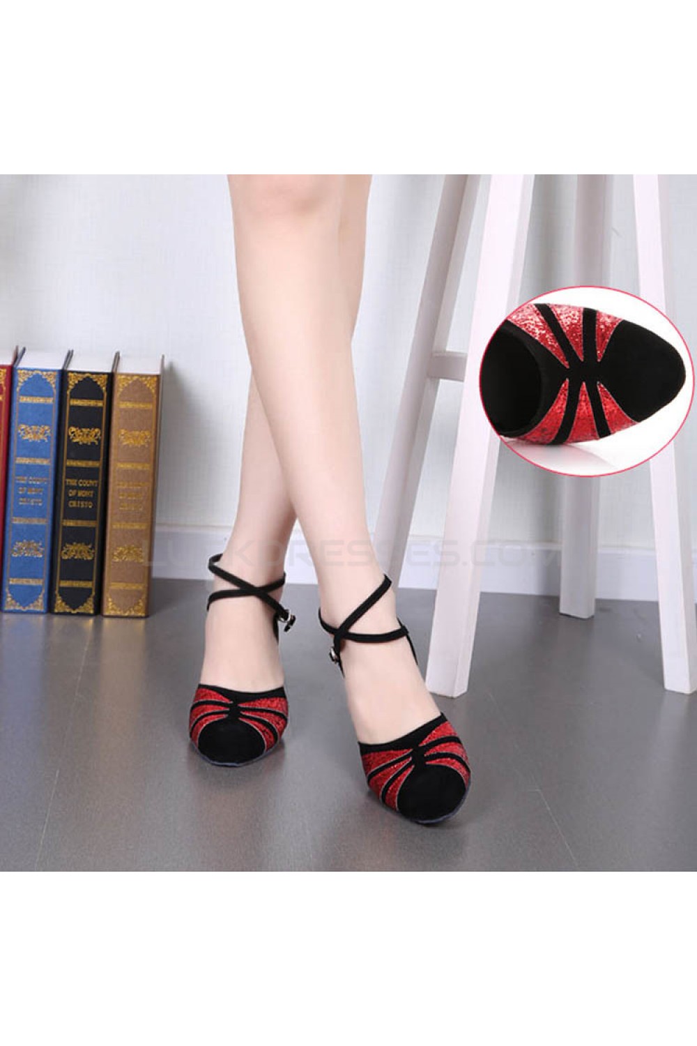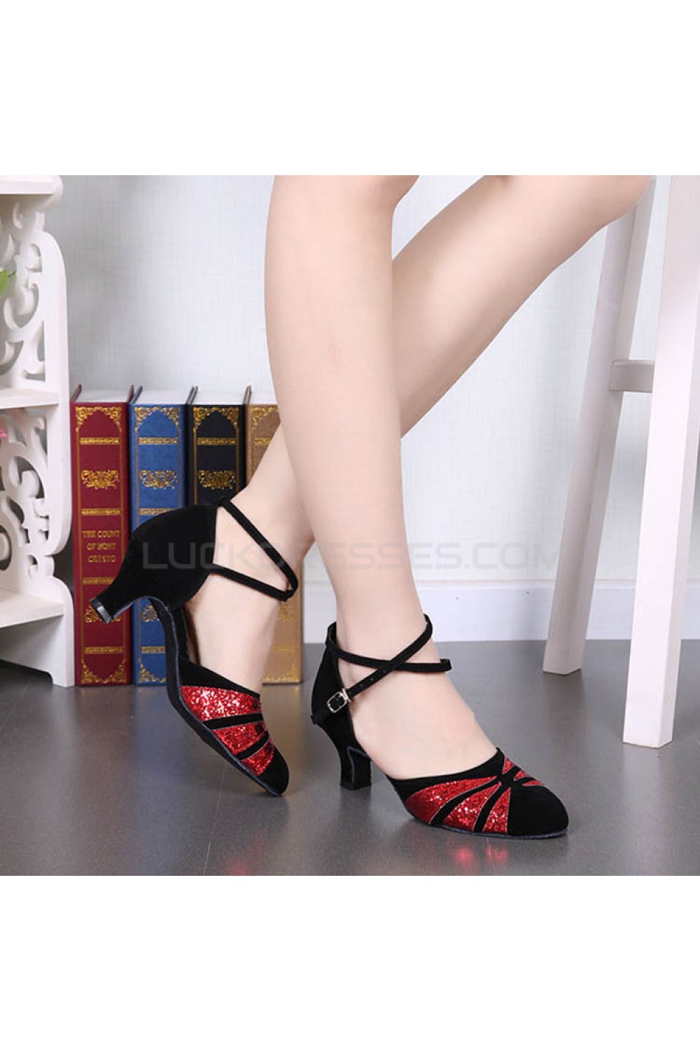 Women's Black Red Sparkling Glitter Heels With Buckle Latin Ballroom/Outdoor Dance Shoes Wedding Party Shoes D801063
