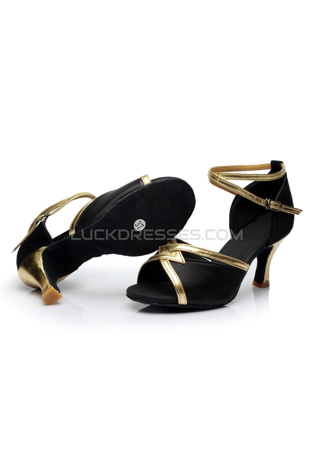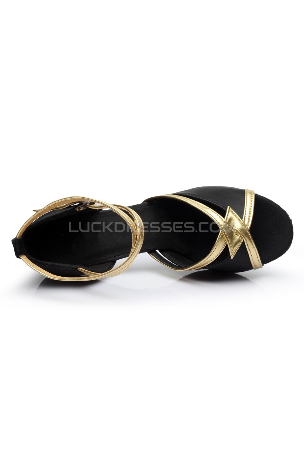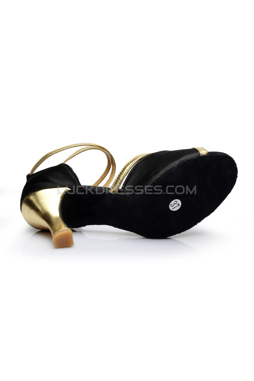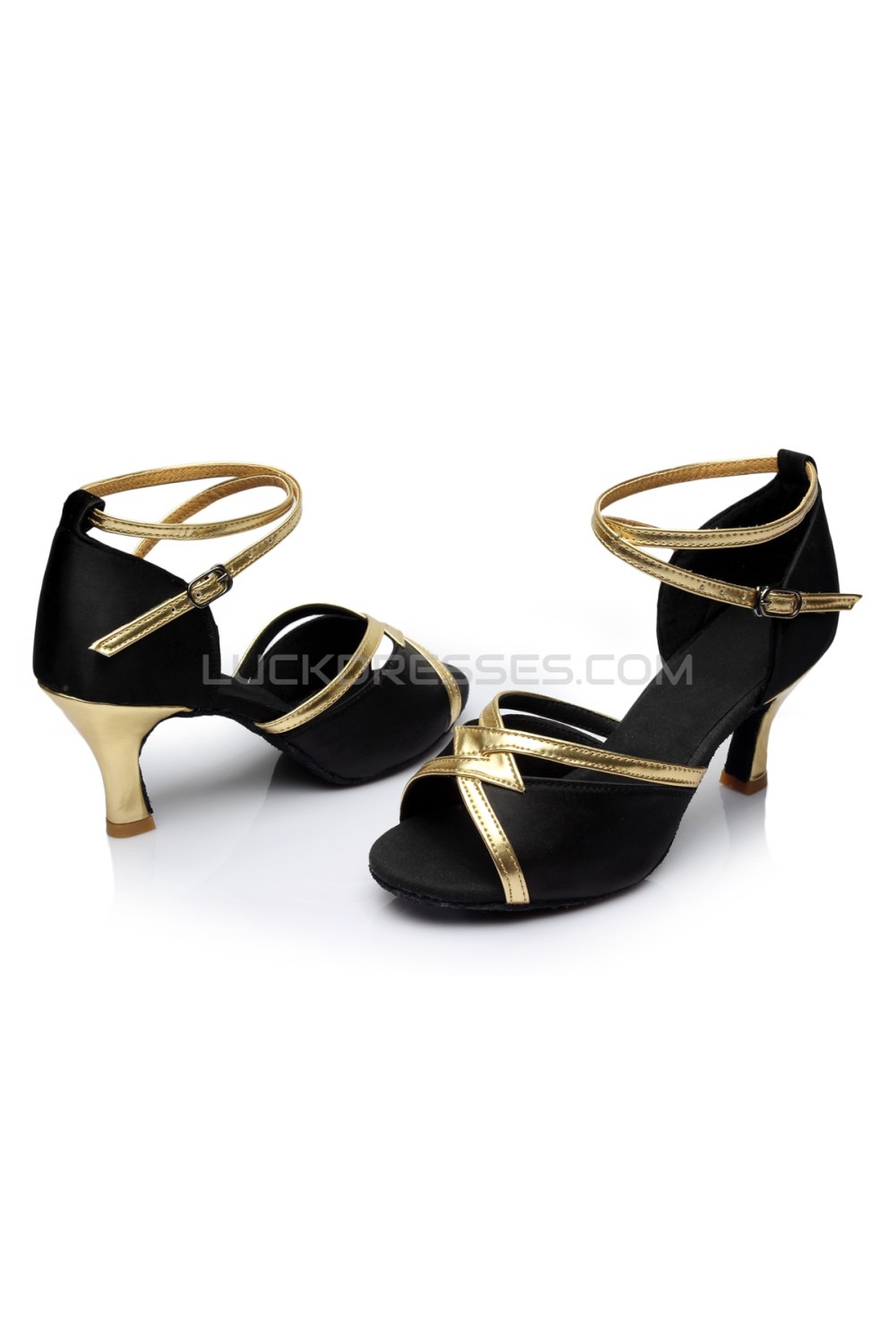 Women's Black Satin Heels Sandals Latin Salsa With Ankle Strap Dance Shoes D602028