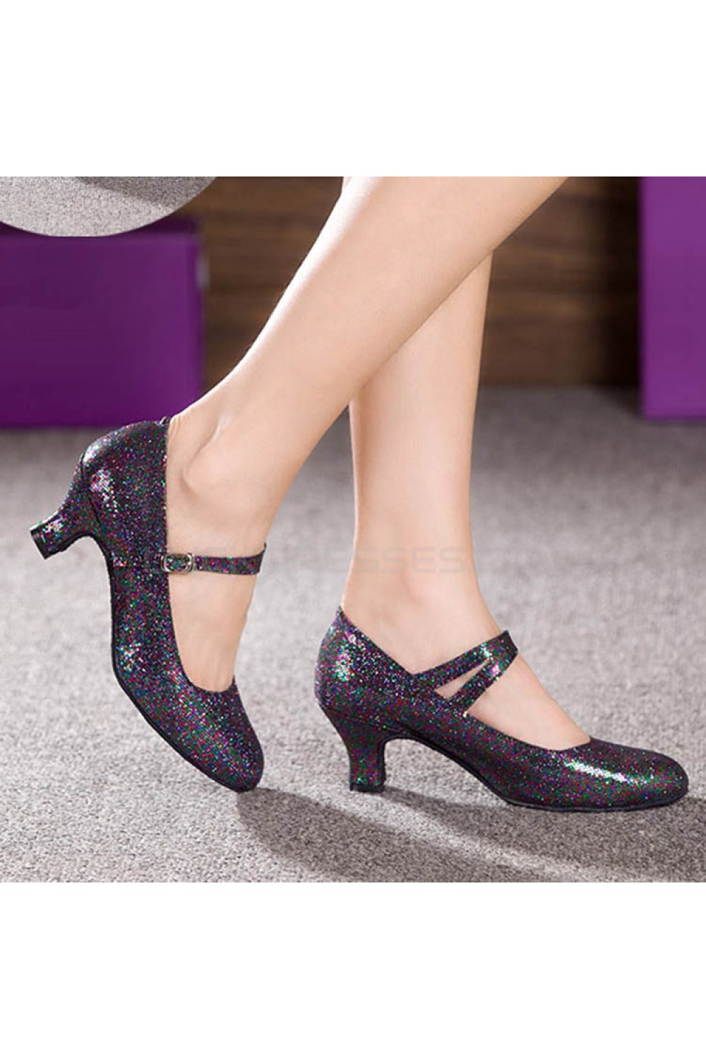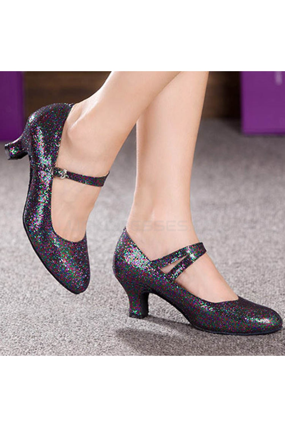 Women's Black Sparkling Glitter Heels With Buckle Latin Ballroom/Outdoor Dance Shoes Wedding Party Shoes D801057