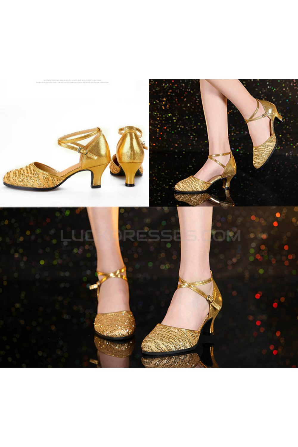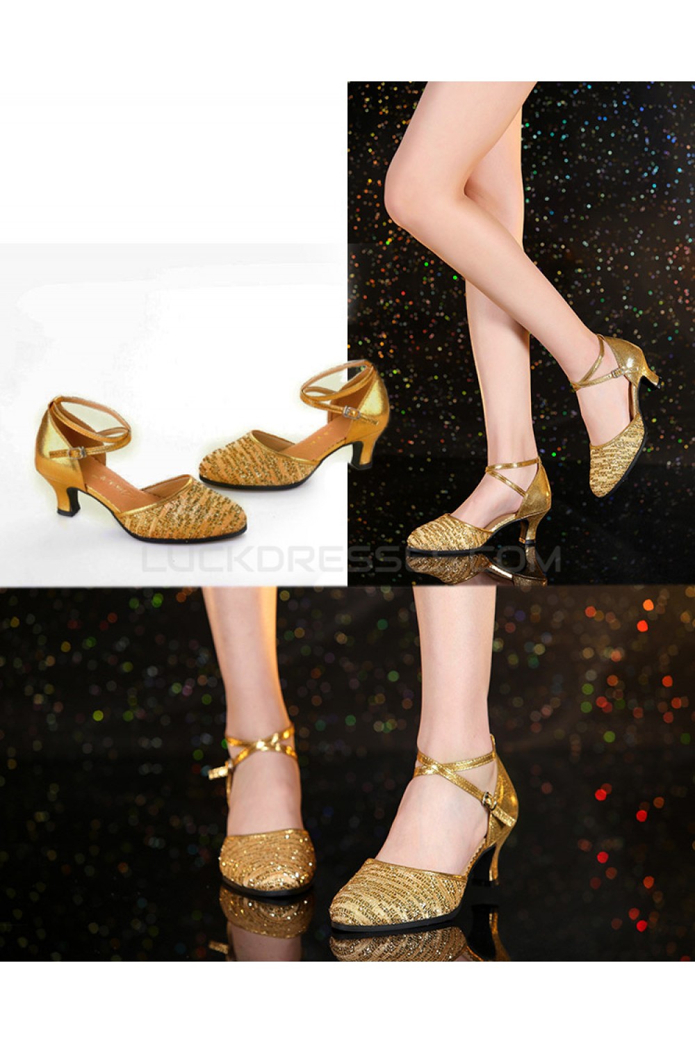 Women's Fashion Gold Sparkling Glitter Heels With Ankle Strap Latin Ballroom Dance Shoes D801037