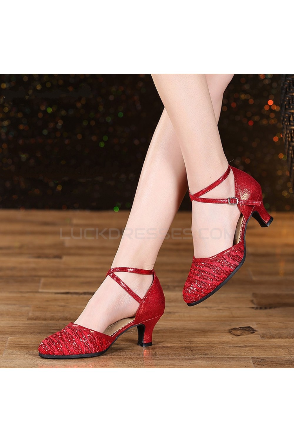 Women's Fashion Red Sparkling Glitter Heels With Ankle Strap Latin Ballroom Dance Shoes D801039