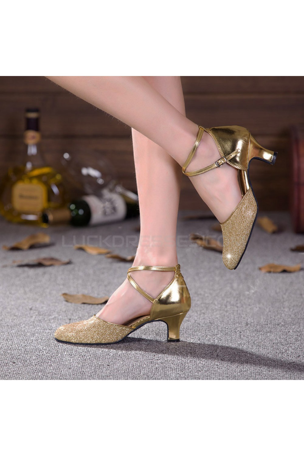 Women's Gold Sparkling Glitter Upper Latin/Ballroom Dance Performance Shoes Wedding Party Shoes D801007