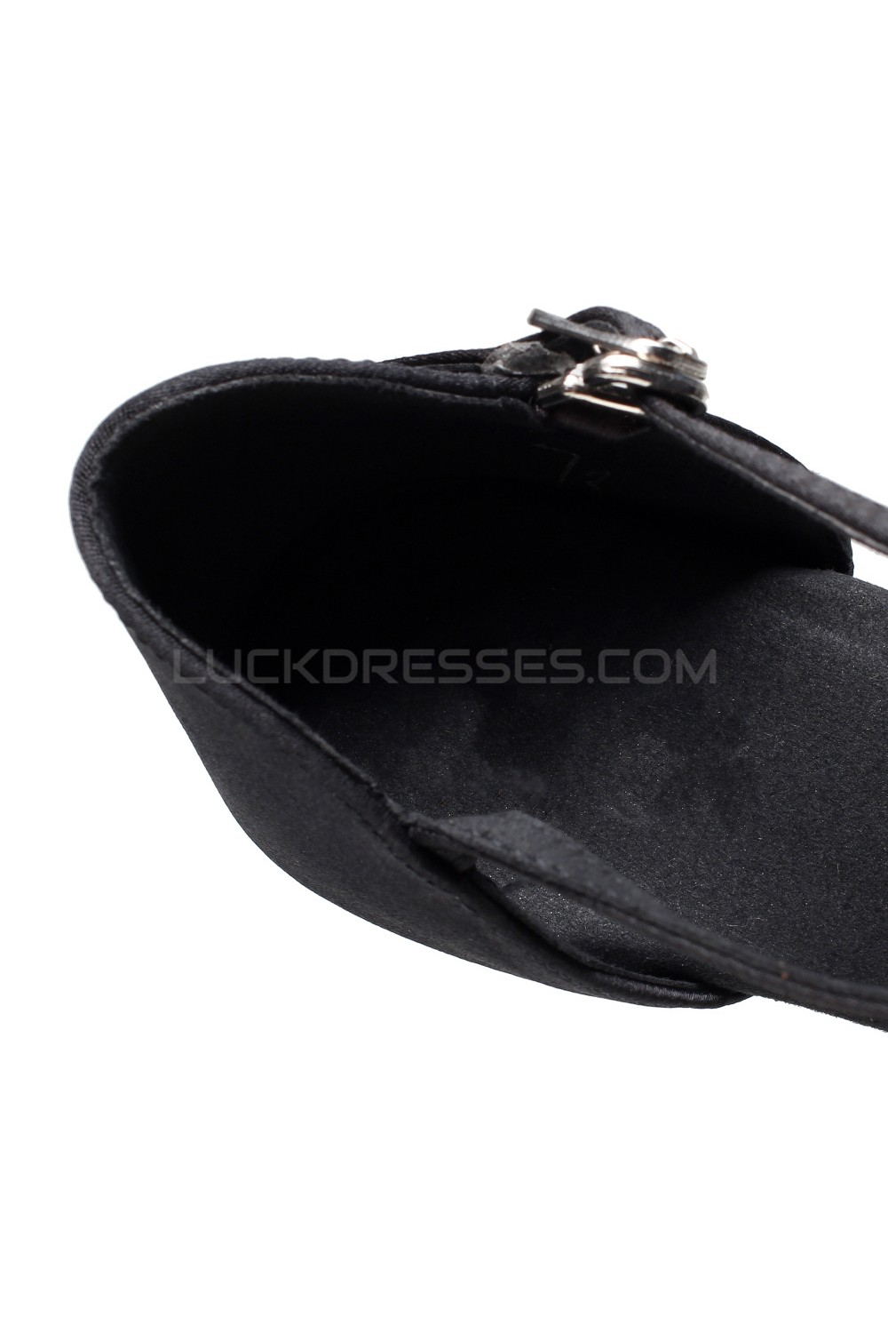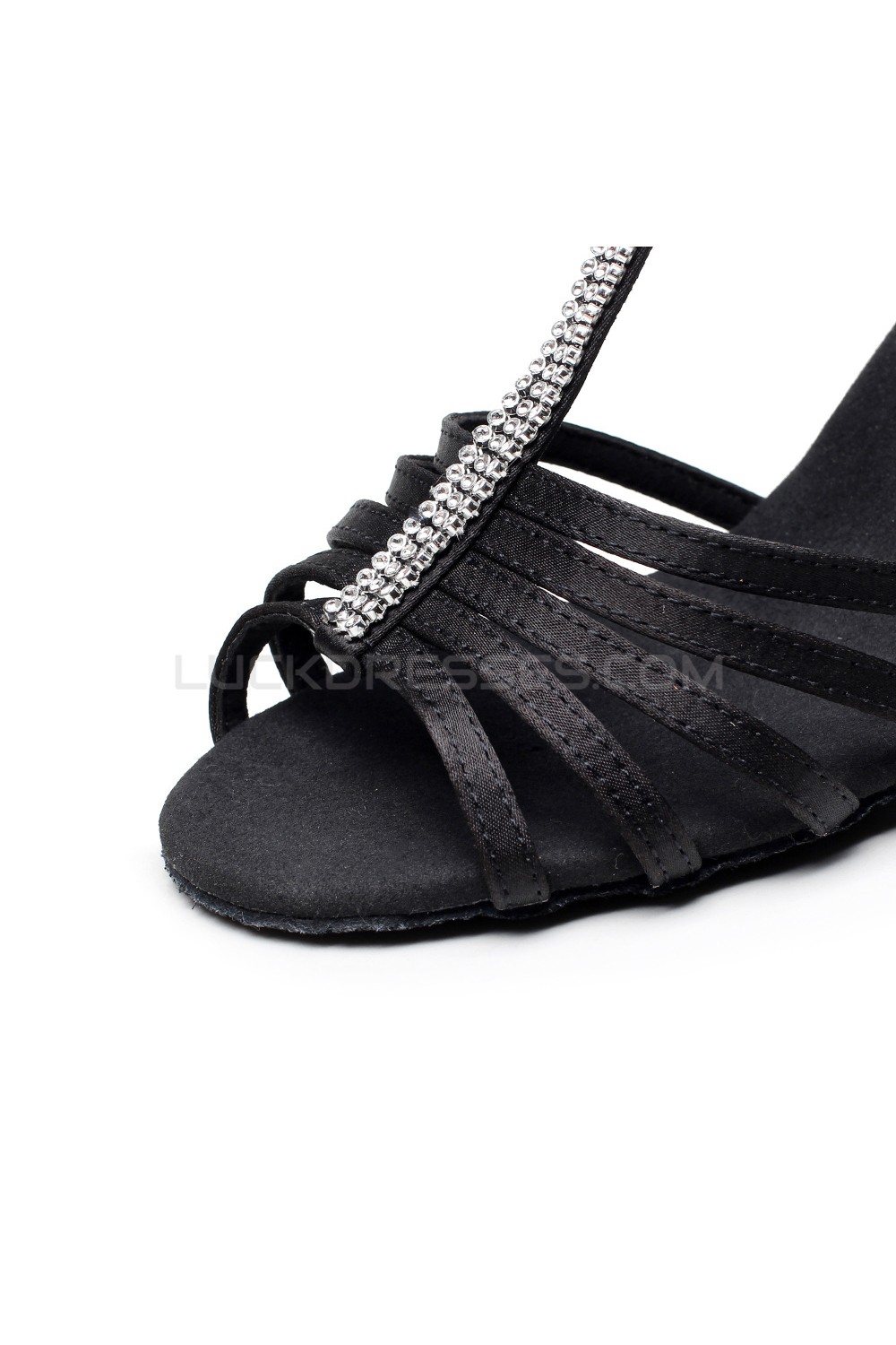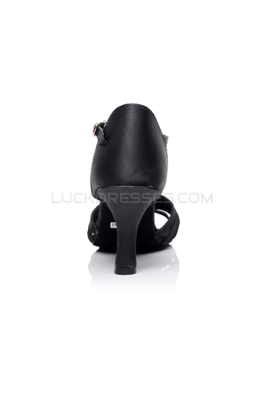 Women's Heels Black Satin Modern Ballroom Latin Salsa T-Strap Dance Shoes D901018
