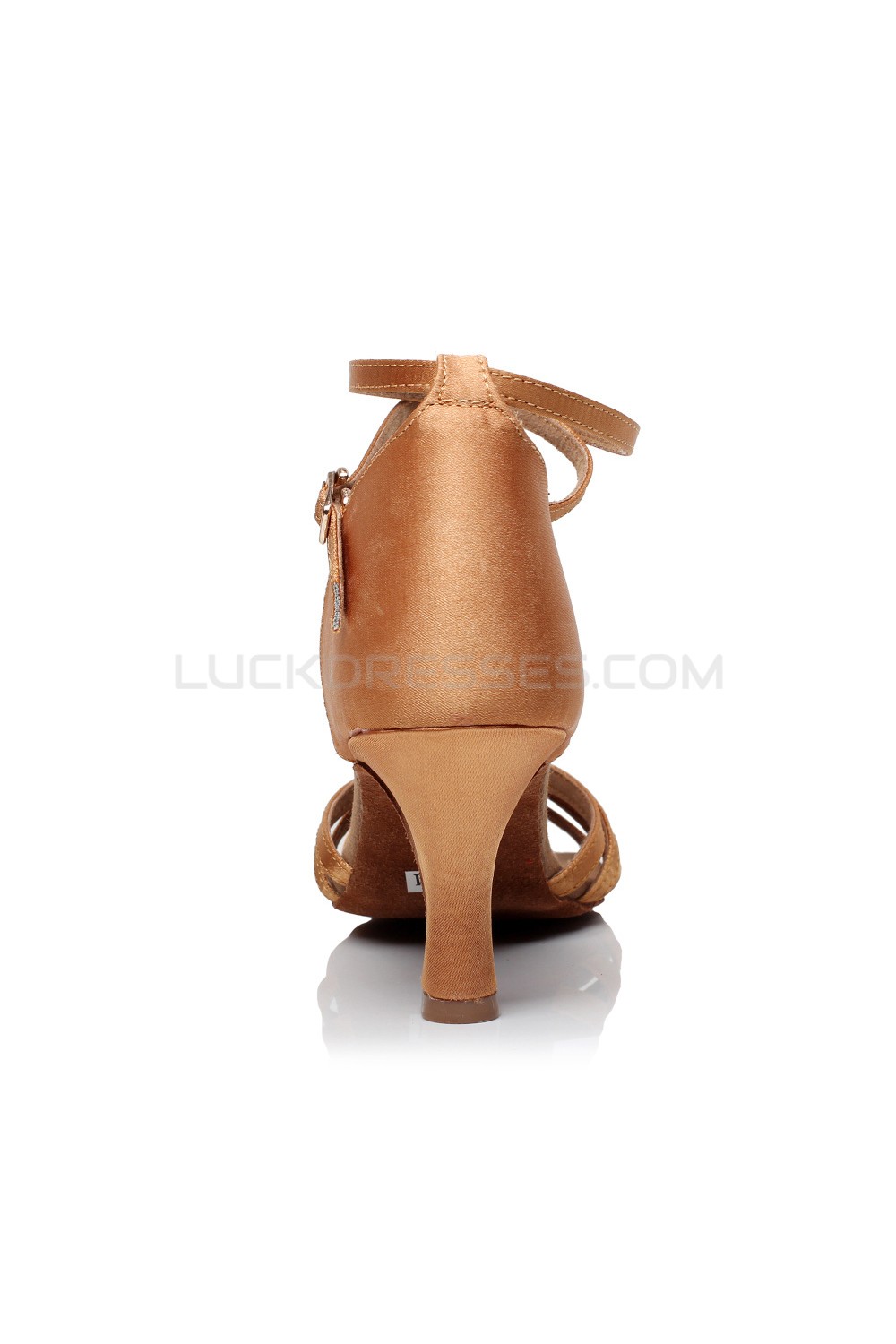 Women's Heels Brown Satin Modern Ballroom Latin Salsa Dance Shoes D901028