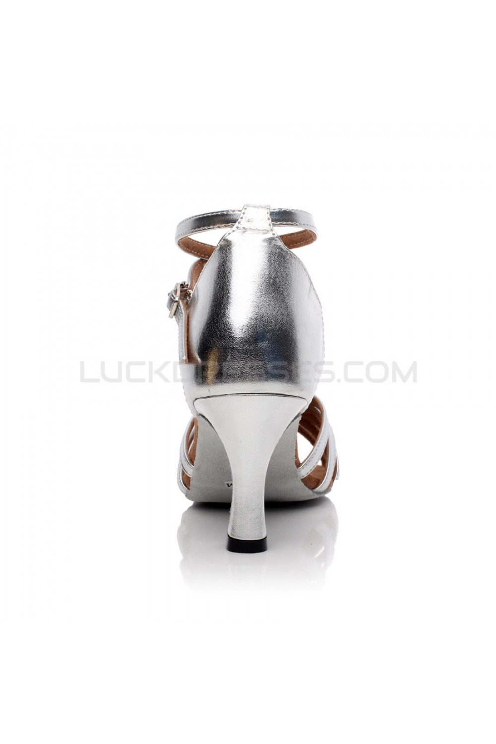 Women's Heels Silver Leatherette Modern Ballroom Latin Salsa Ankle Strap Dance Shoes D901002