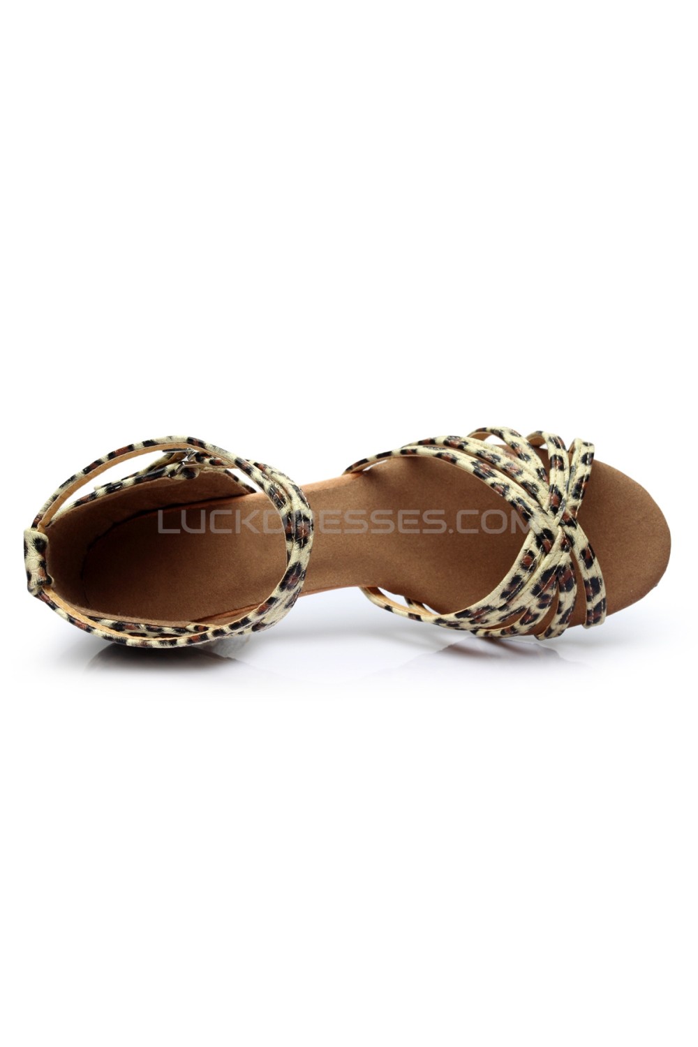 Women's Leopard Satin Heels Sandals Latin Salsa With Ankle Strap Dance Shoes D602022