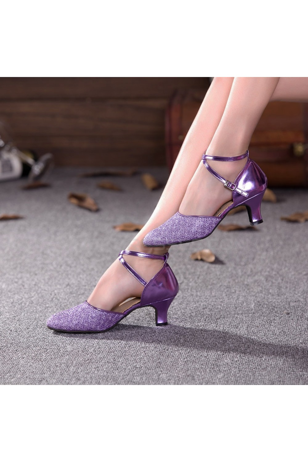 Women's Purple Sparkling Glitter Upper Latin/Ballroom Dance Performance Shoes D801008