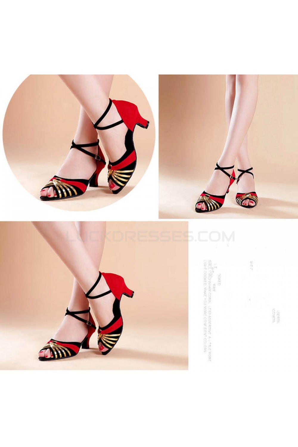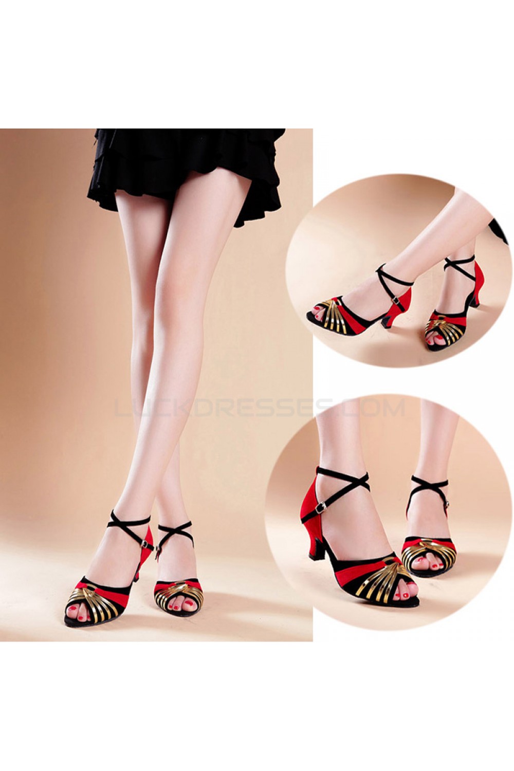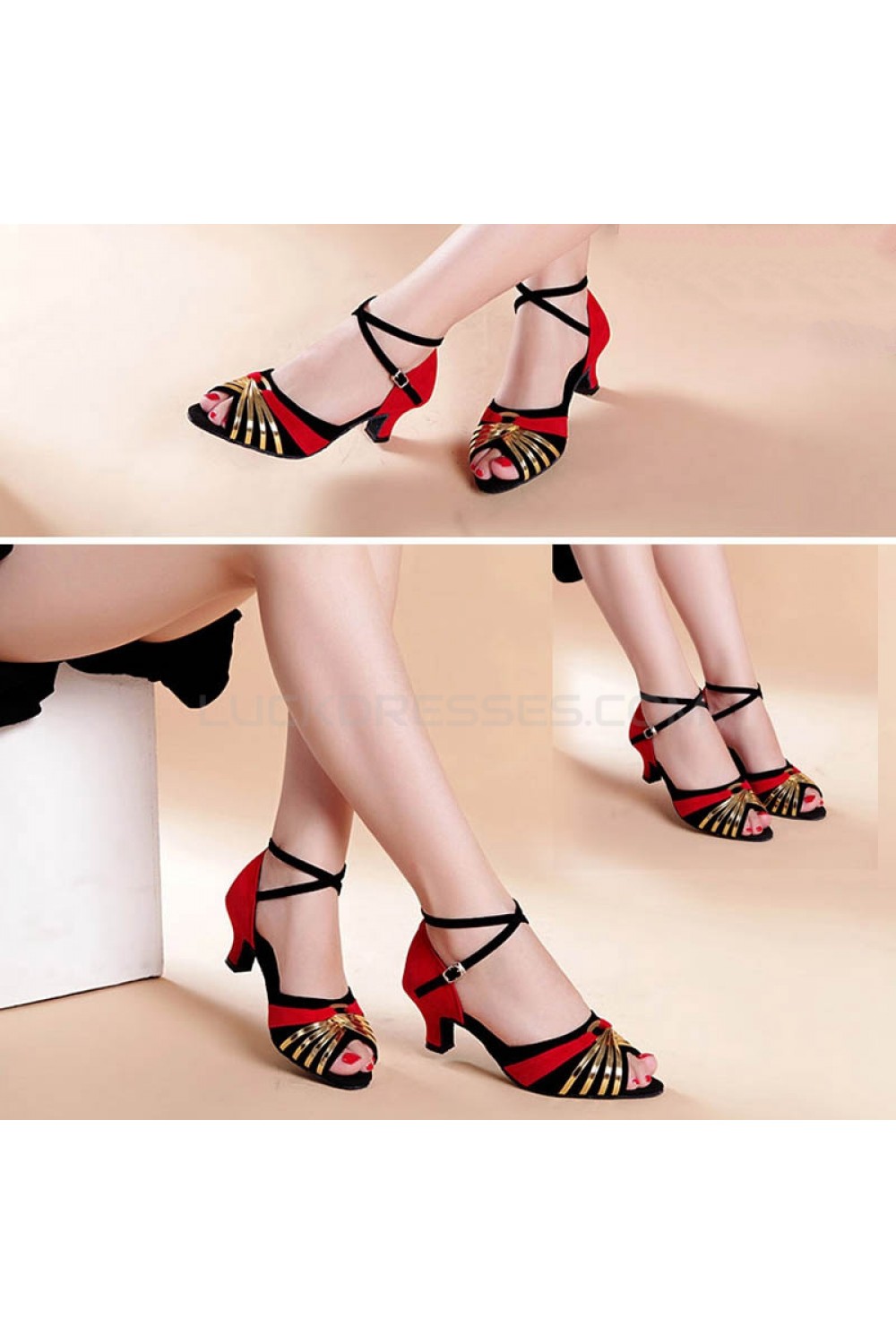 Women's Red Black Gold Women's Piscine Mouth Shoes Open Toe Modern Ballroom/Latin Dance Shoes D801001