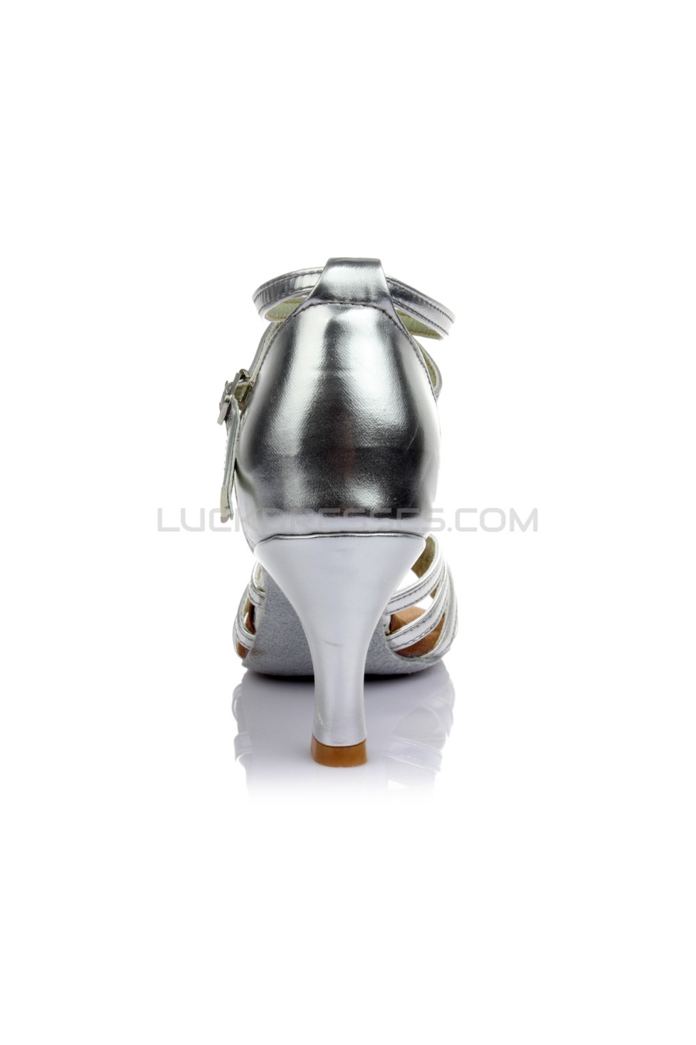 Women's Silver Leatherette Heels Sandals Latin Salsa With Ankle Strap Dance Shoes Wedding Party Shoes D602016