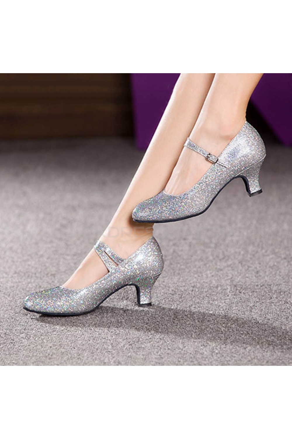 Women's Silver Sparkling Glitter Heels With Buckle Latin Ballroom/Outdoor Dance Shoes Wedding Party Shoes D801055