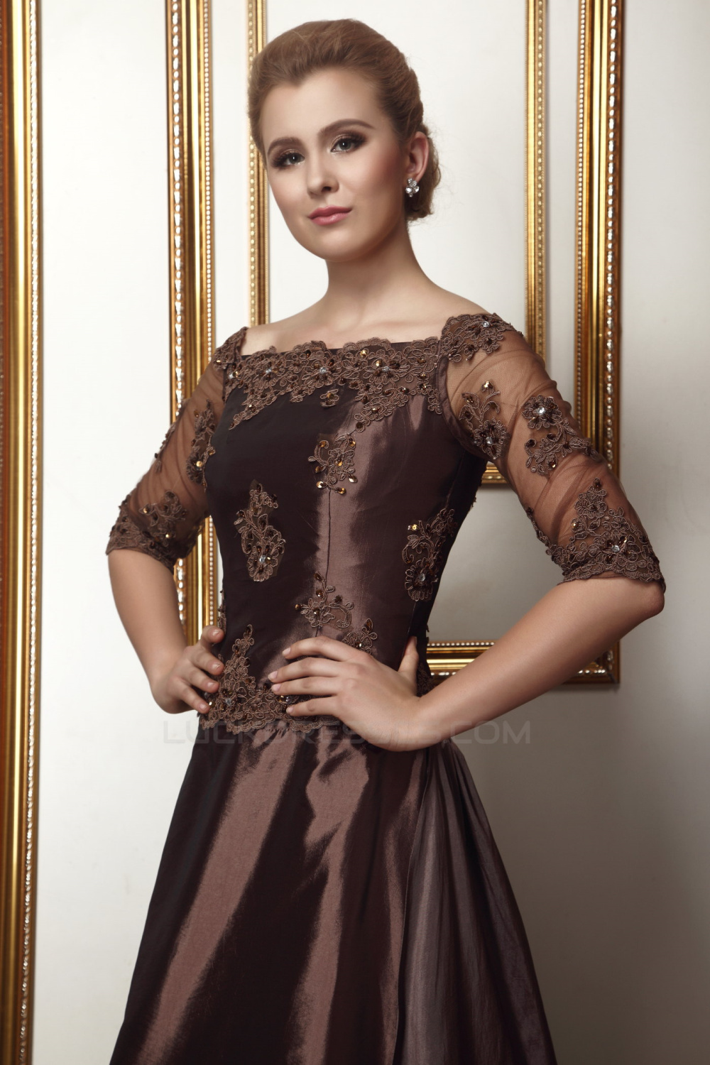 A-Line Half Sleeves Beaded Applique Evening Party Mother of the Bride Dresses 02020976