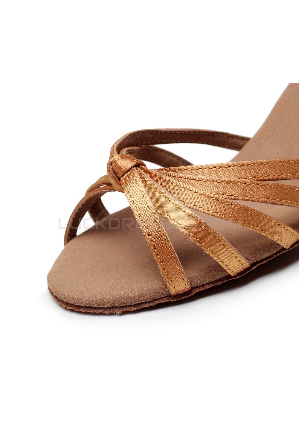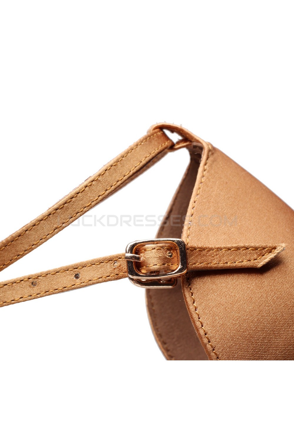 Women's Heels Brown Satin Modern Ballroom Latin Salsa Ankle Strap Dance Shoes D901009
