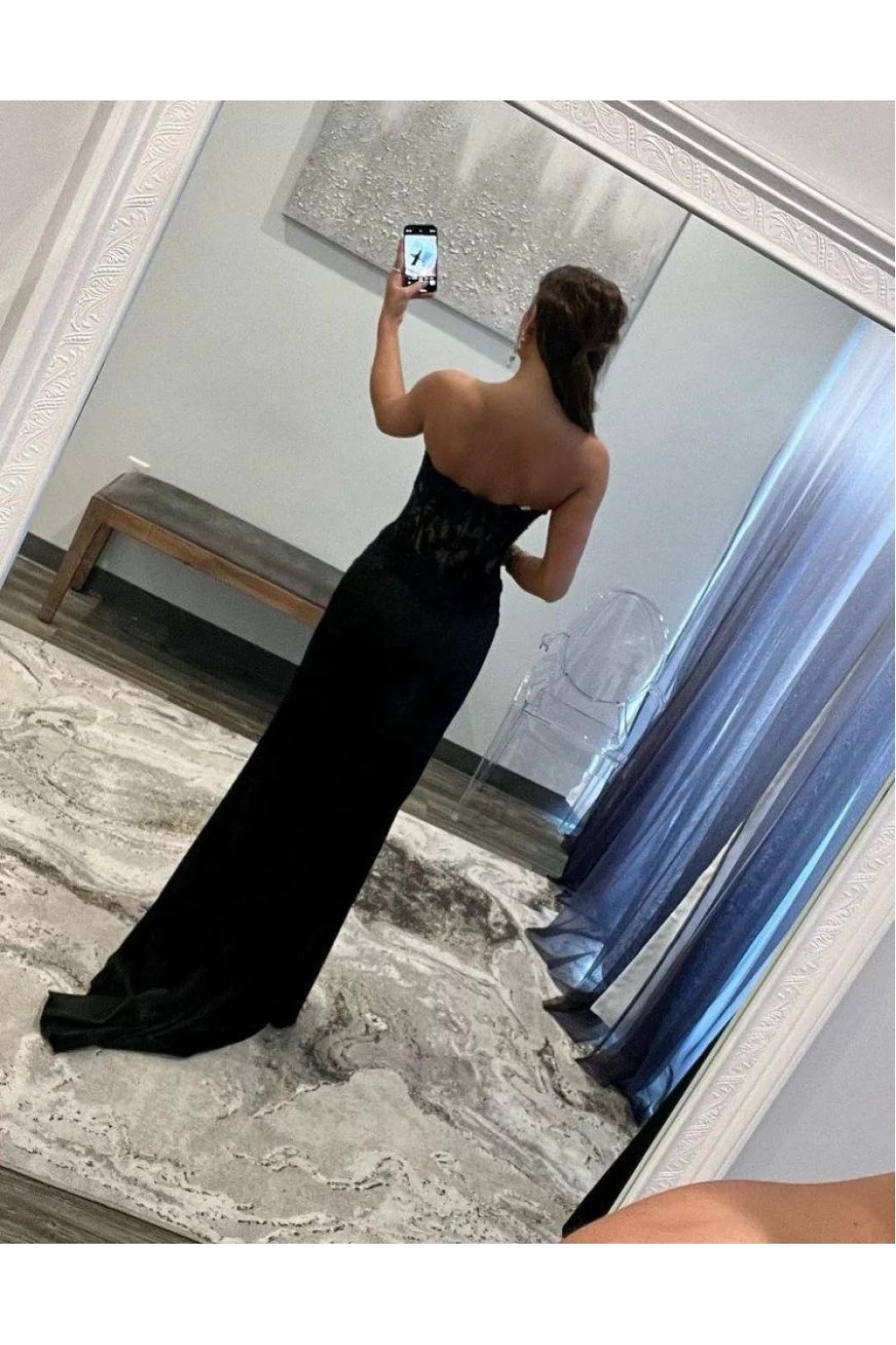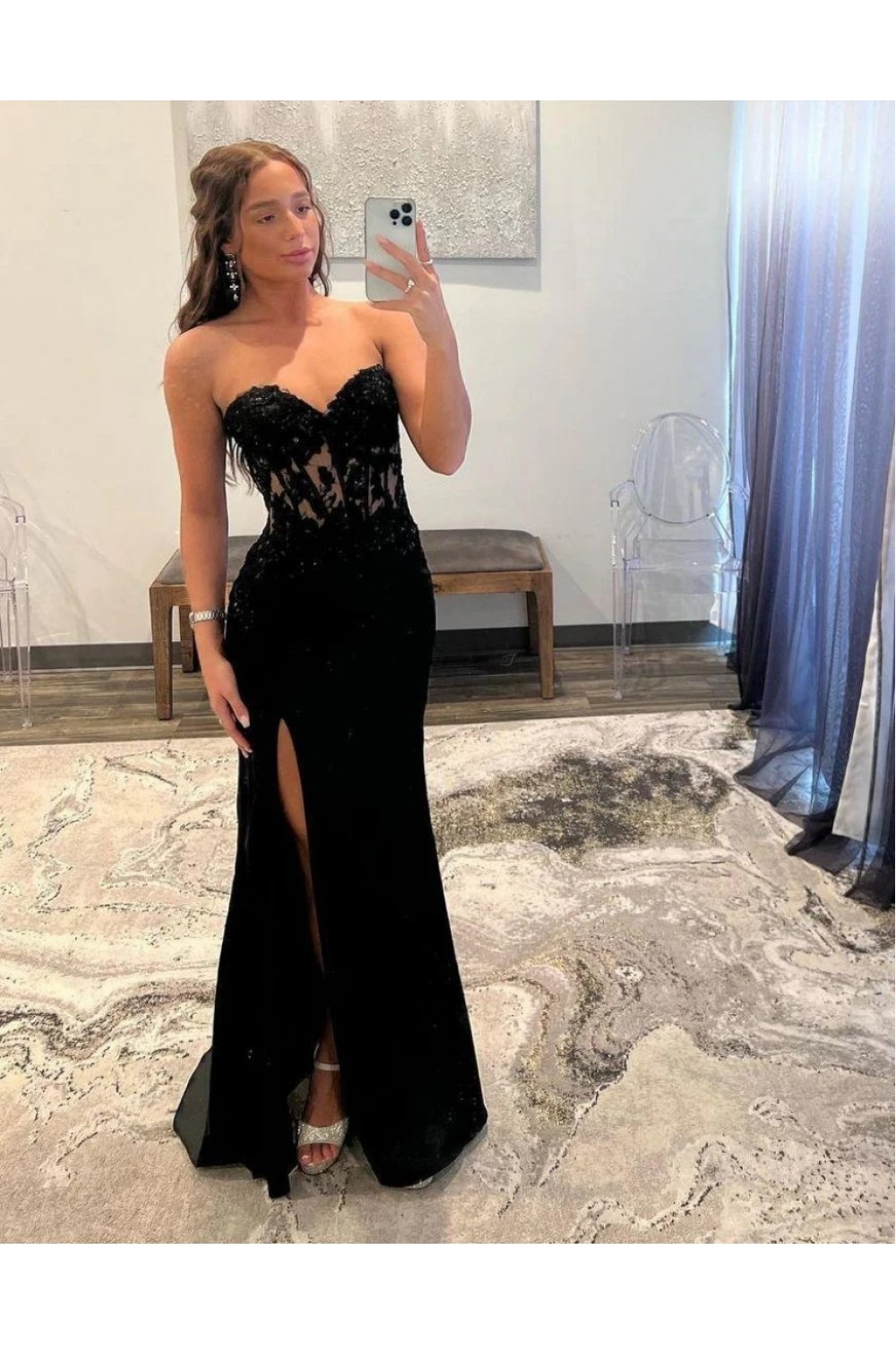 Long Black Mermaid Sweetheart Lace Prom Dresses Formal Evening Dresses with Slit 901929