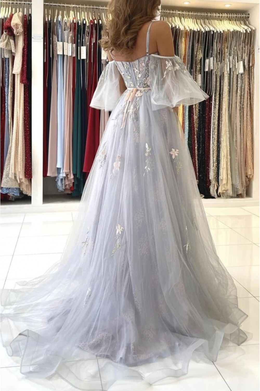 A-Line Long Tulle Lace Prom Dresses Formal Evening Gowns 901832