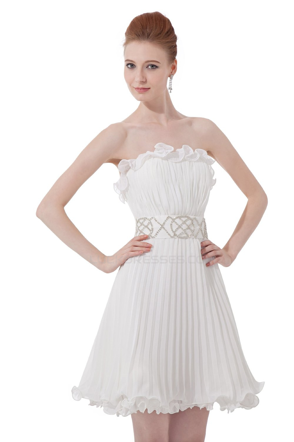 A-Line Strapless Pleated Short Beaded Chiffon Prom Evening Formal Party Dresses ED010493