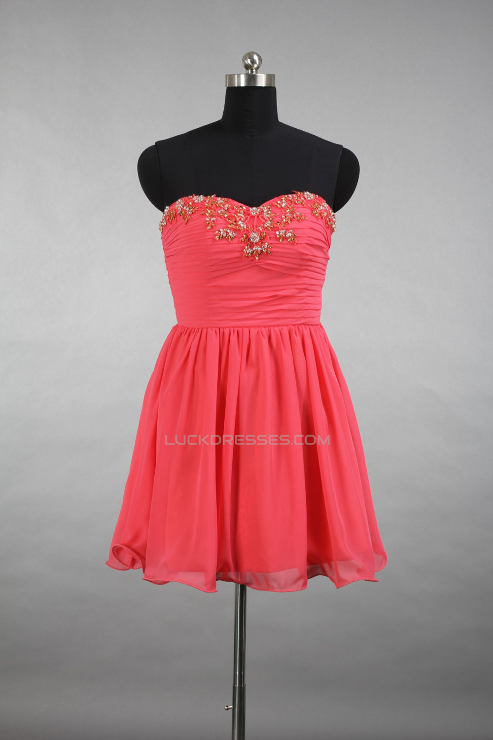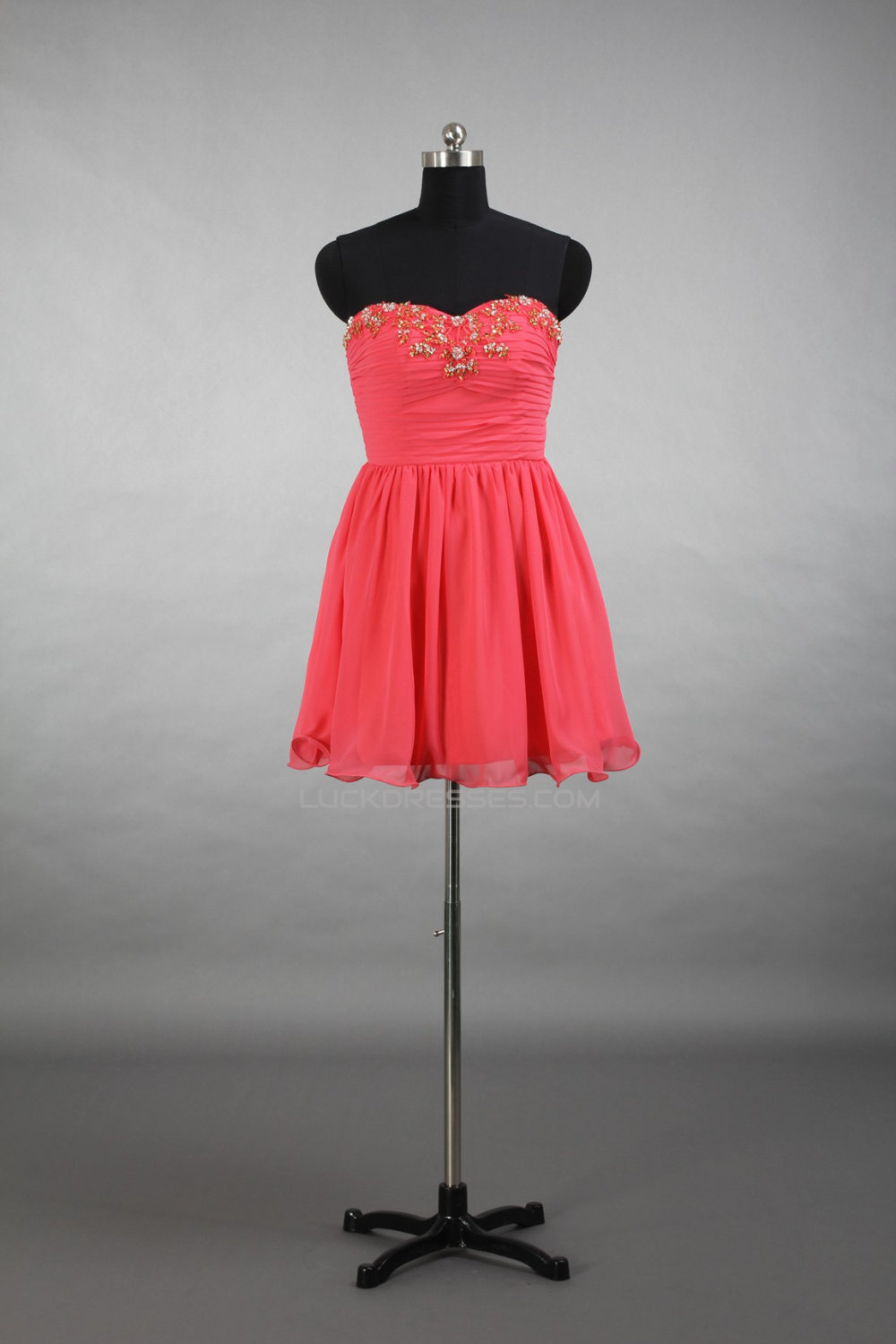 A-Line Sweetheart Beaded Short Chiffon Prom Evening Formal Dresses ED011507