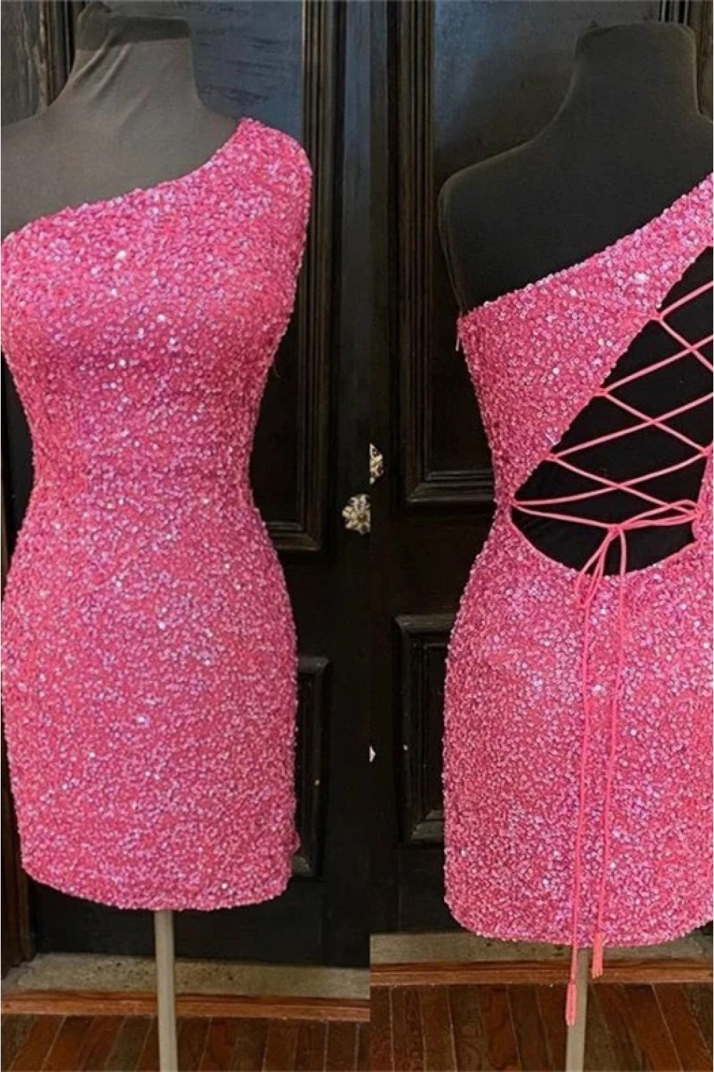 Short One Shoulder Sequins Prom Dresses Homecoming Dresses 904037
