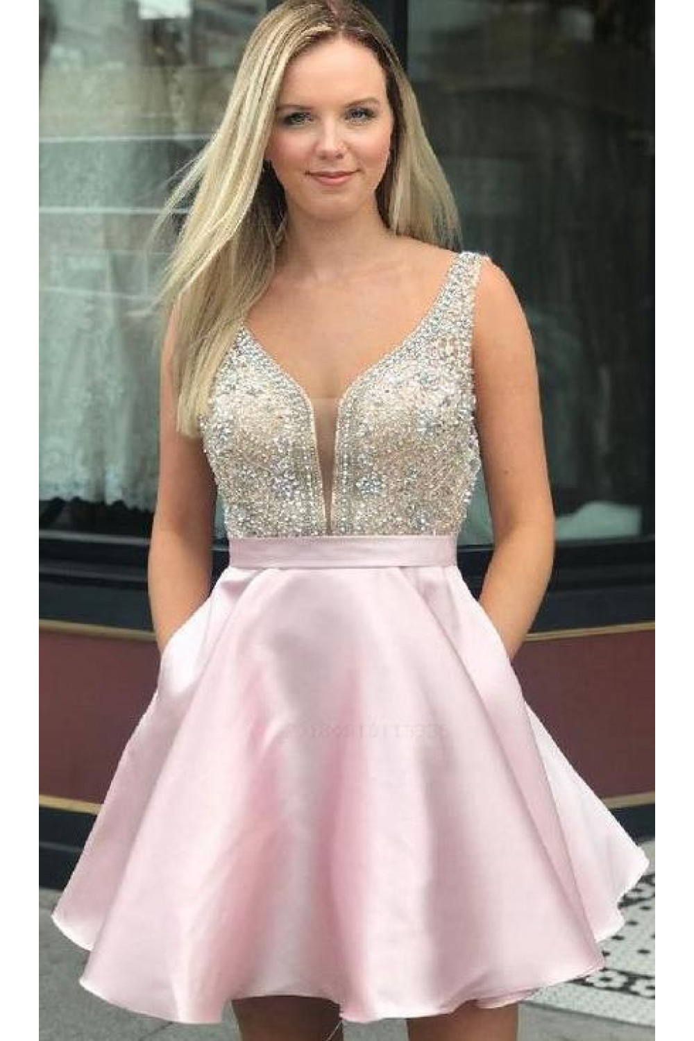 Short Pink Beaded Prom Dress Homecoming Dresses Graduation Party Dresses 701015