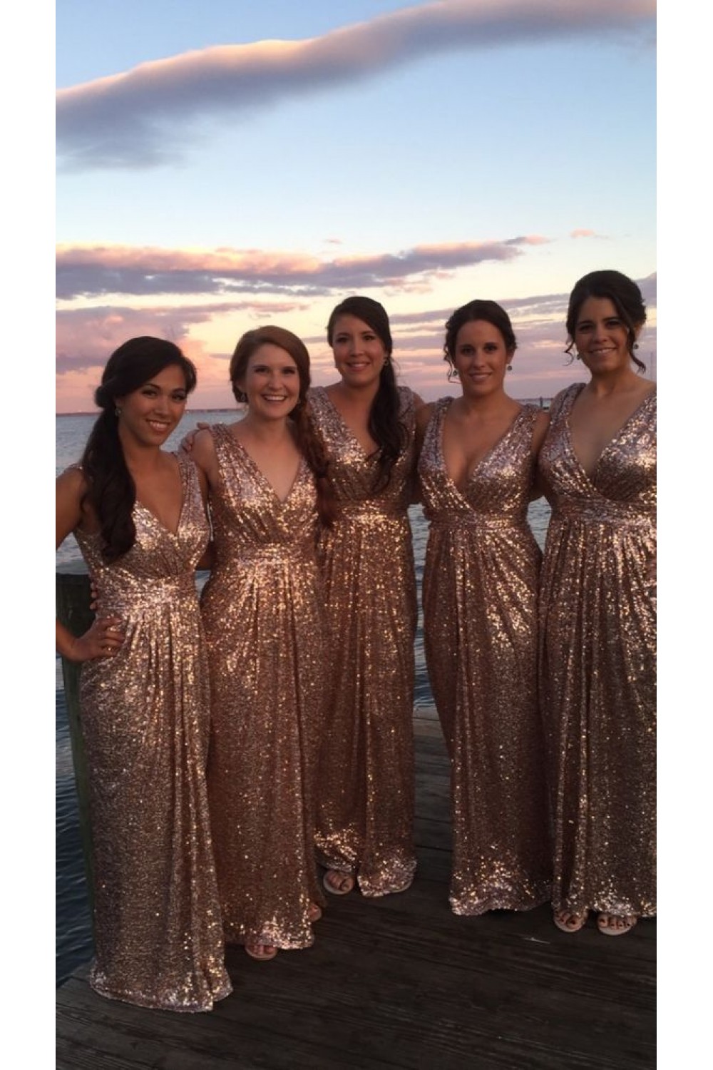 -63% Sheath/Column Sequins V-Neck Floor Length Bridesmaid Dresses 3010469
