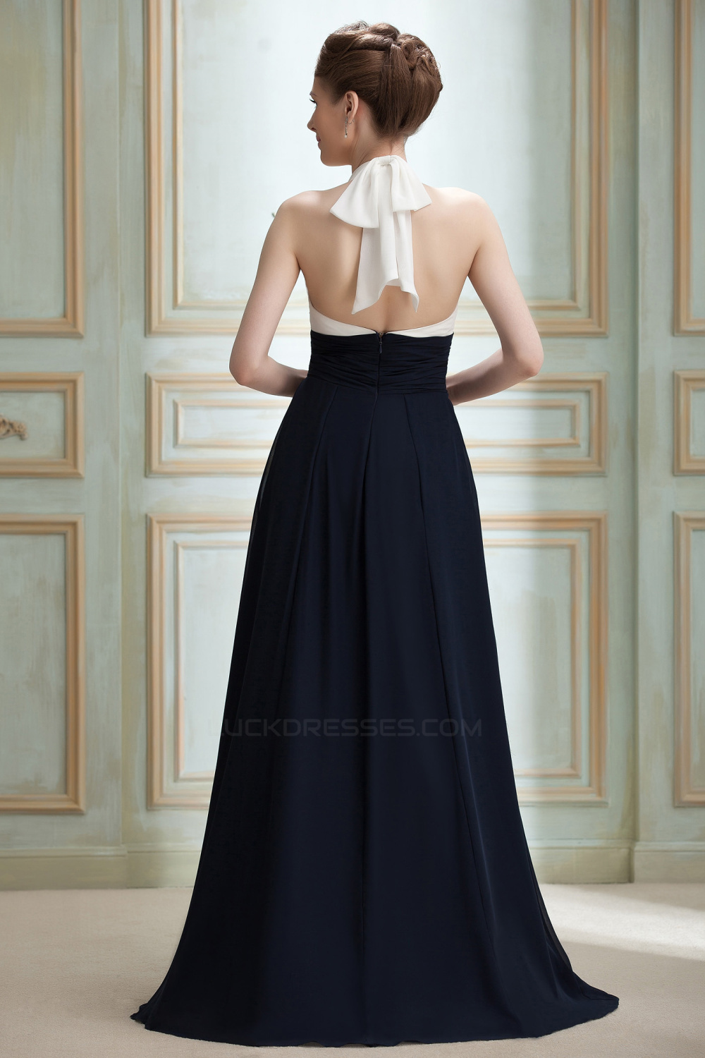 A-Line Halter Long Chiffon Prom Evening Party Bridesmaid Dresses 02020990