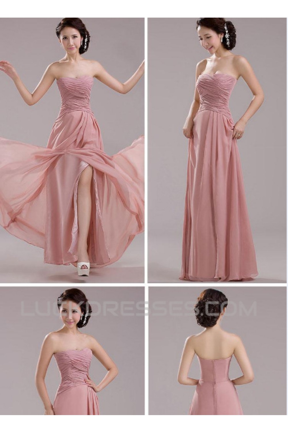 -60% A-Line Long Pink Chiffon Prom Evening Formal Bridesmaid Dresses ED011203