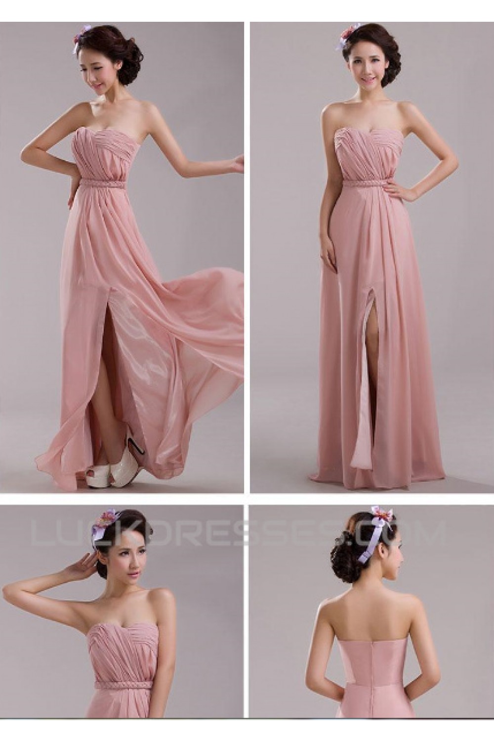 A-Line Long Pink Chiffon Prom Evening Formal Dresses ED011208
