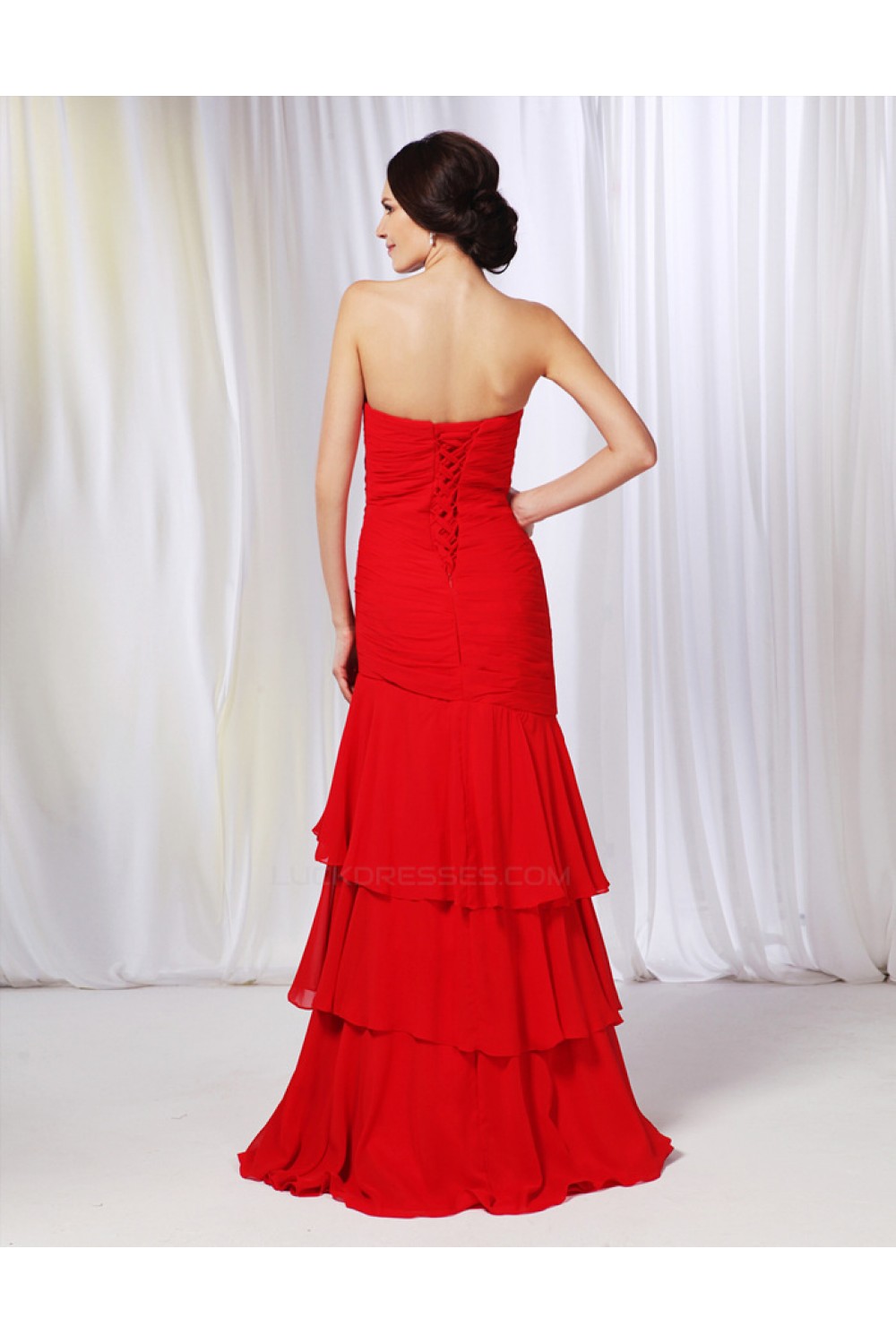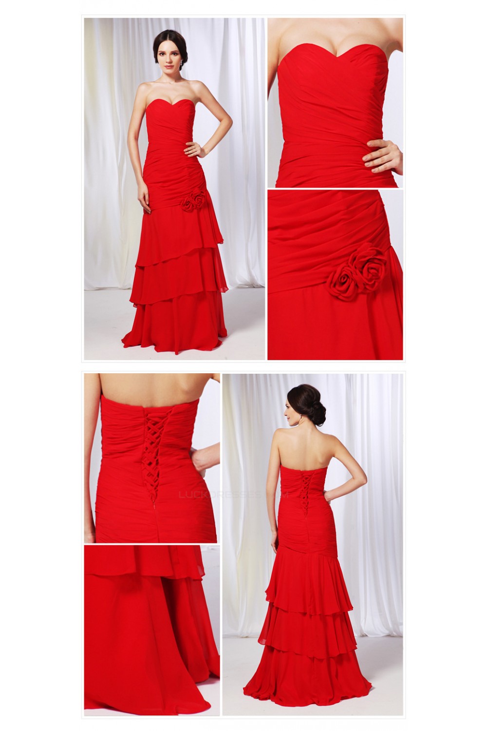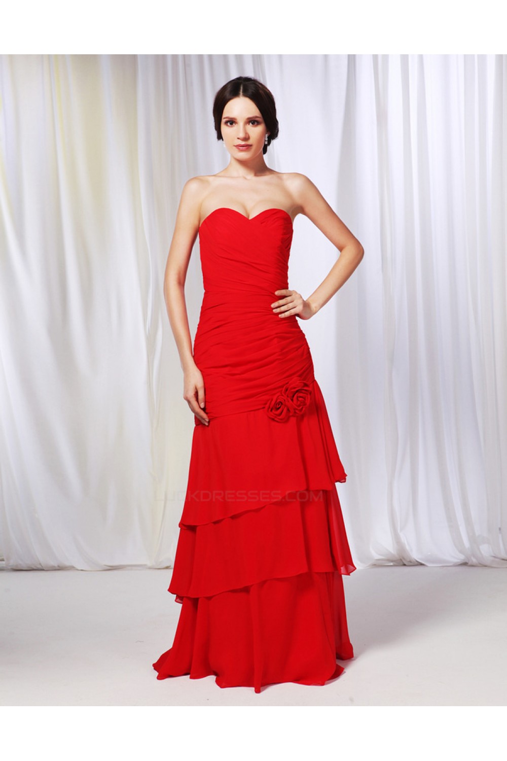 A-Line Sweetheart Long Red Chiffon Prom Evening Formal Dresses ED010992