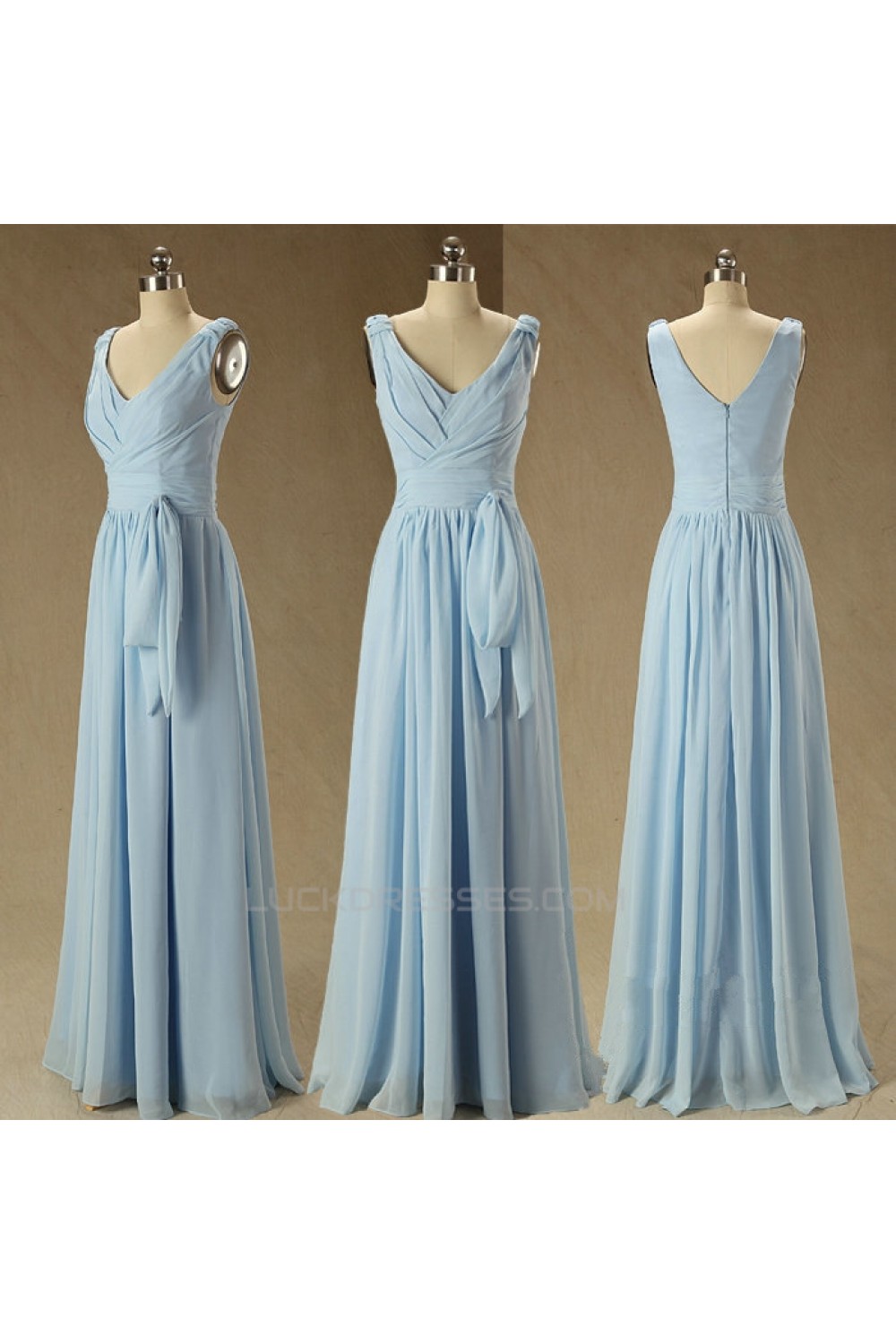A-Line V-Neck Long Blue Chiffon Bridesmaid Dresses/Wedding Party Dresses BD010709