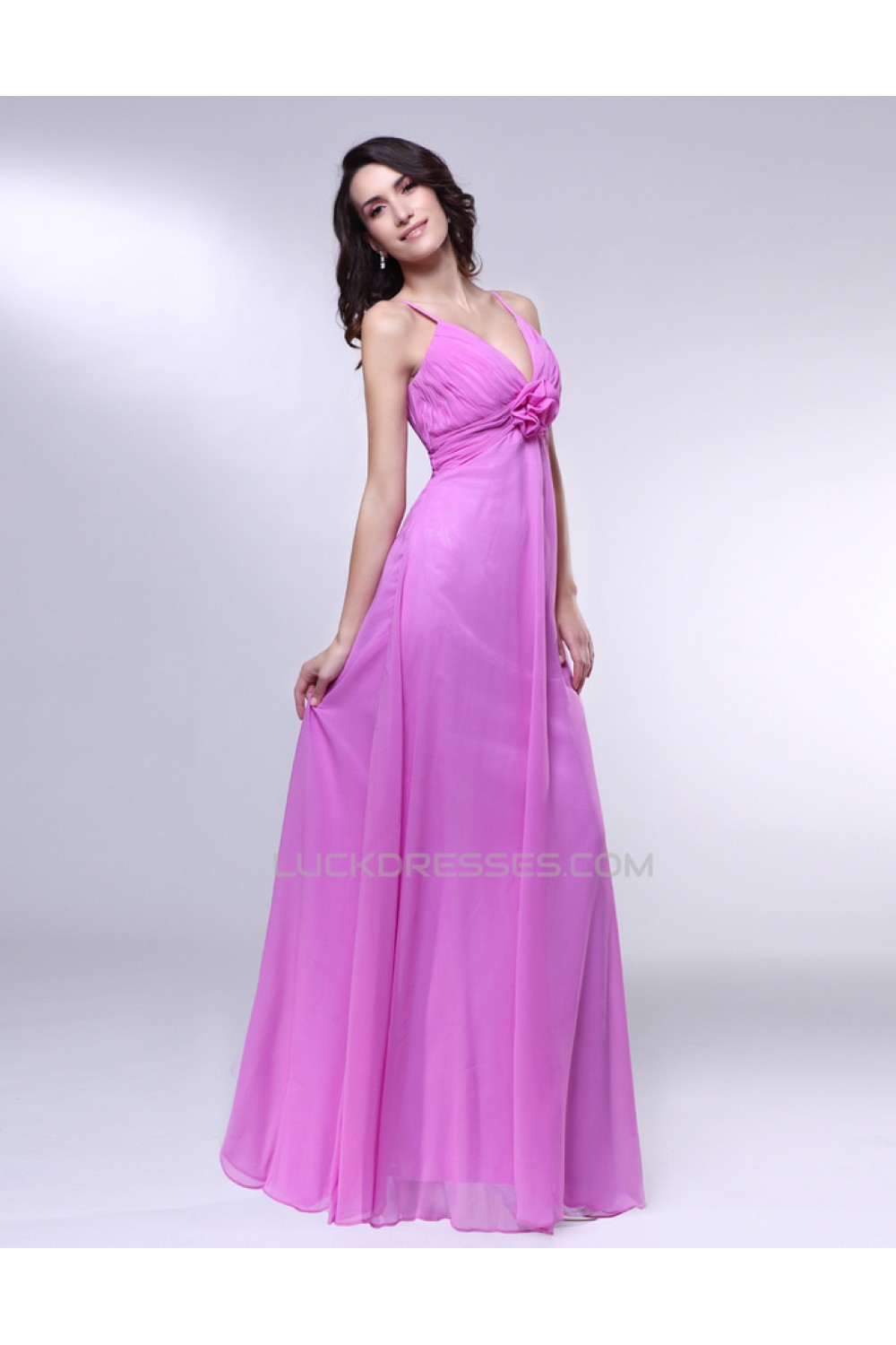 -60% A-Line V-Neck Spaghetti Strap Long Chiffon Prom Evening Formal Dresses ED010995