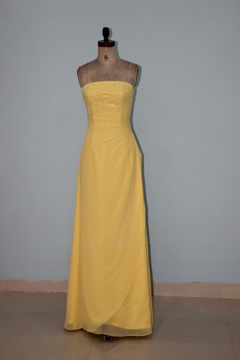 Sheath/Column Strapless Long Yellow Beaded Chiffon Bridesmaid Dresses/Wedding Party Dresses BD010336