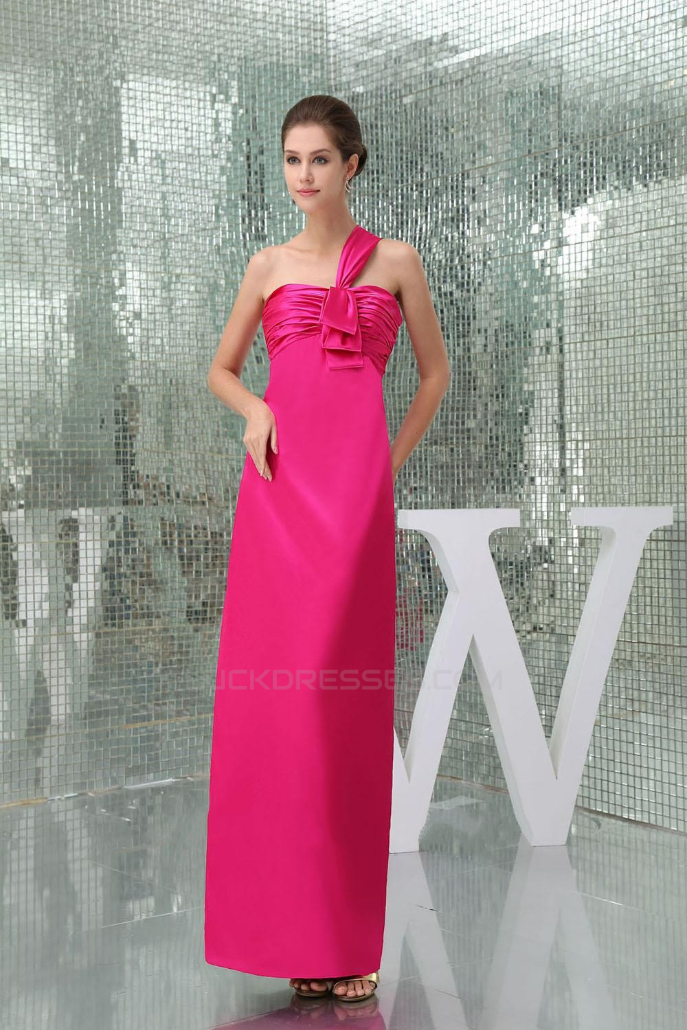 Sheath One-Shoulder Hot Pink Long Bridesmaid Dresses/Wedding Party Dresses BD010433